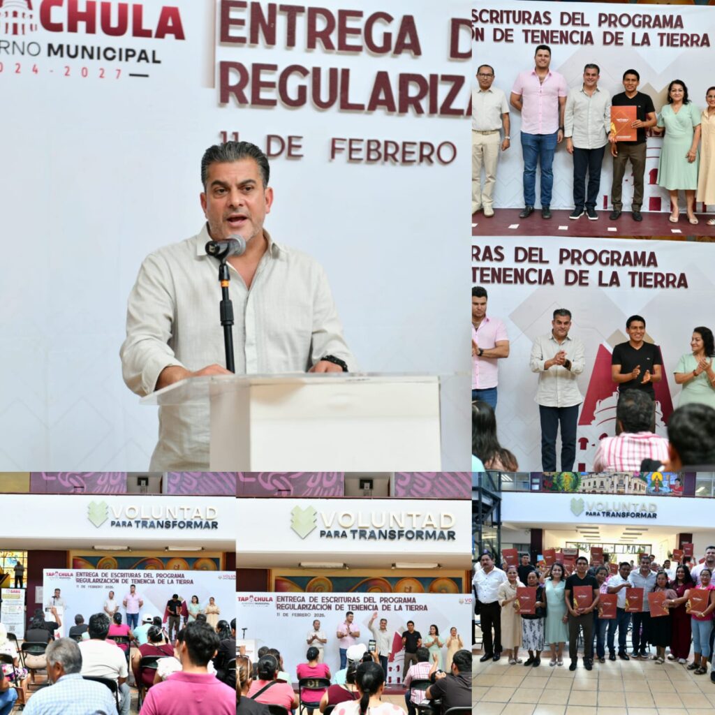 Felicitó a las familias de las colonias La Aviación I, Jardines de Chiapas, Guadalupe Tiplillo, San Diego, Los Ángeles, Nueva Jerusalén, Carmelitas I, La Cima, Bella Vista, Los Pinos y Revolucionaria Campesina, quienes desde este momento ya tienen una escritura en sus manos lo que significa seguridad para sus familias, certeza para sus hijos y la posibilidad de acceder a programas, créditos y apoyos que antes no eran posibles.