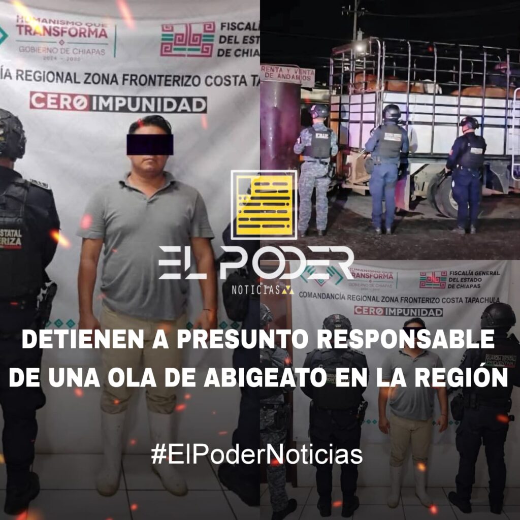 Detienen a presunto responsable de abigeato en Tuxtla Chico.