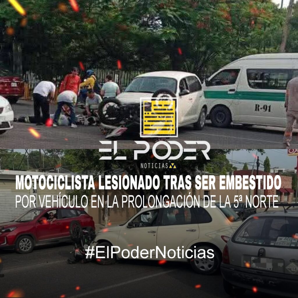 Motociclista resulta lesionado tras ser embestido por vehículo en la prolongación de la 5ª Norte.