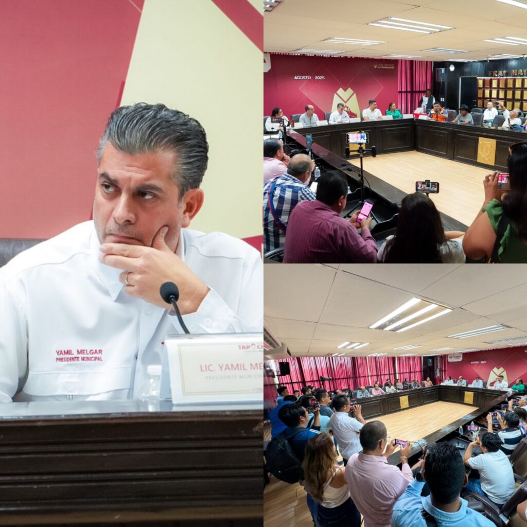 *Trabajamos para atender rezago en el basurero municipal: Yamil Melgar*En el marco de una rueda de prensa, el alcalde Yamil Melgar aseveró que el Ayuntamiento de Tapachula trabaja con voluntad para atender el rezago en el basurero municipal, refrendado su compromiso con la protección del medio ambiente y los recursos naturales.El edil precisó que su administración trabaja en sinergia con las autoridades federales y estatales en la atención de las recomendaciones emitidas por la Procuraduría Federal de Protección al Ambiente (PROFEPA), que aplicó un cierre parcial en el basurero municipal. Yamil Melgar expuso que las omisiones del pasado, generaron la problemática que está siendo atendida por su gobierno, con el firme propósito de garantizar la protección de la ciudadanía y del medio ambiente.Al hacer uso de la palabra, el secretario de Desarrollo Urbano y Ecología, Mario Santizo Martínez, resaltó que con el respaldo de la Procuraduría Ambiental del Estado de Chiapas y de la PROFEPA, se trabaja para atender la problemática del cierre parcial del basurero, haciendo las adecuaciones necesarias que permitan solventar las observaciones.Posteriormente, al dar los pormenores de los trabajos técnicos realizados, la subdirectora de Ecología Municipal, Alejandra Salomé Méndez, explicó que la administración del edil Yamil Melgar trabaja en la recuperación del sistema de tratamiento de lixiviados, mejoramiento del alumbrado, mantenimiento de caminos con maquinaria pesada, capacitación del personal, el cumplimiento de los permisos, entre otras problemáticas heredadas de administraciones pasadas, que dejaron de dar mantenimiento, cuidado y monitoreo al terreno que ocupa el basurero. Finalmente, el secretario de Protección Civil Municipal, Luis Demetrio Martínez López, resaltó que gracias al trabajo interinstitucional y en seguimiento al Plan de Contingencia, se mantiene un monitoreo constante en el sitio de disposición de los residuos sólidos, a fin de prevenir riesgos de incendios y otras situaciones. En la rueda de prensa participó el primer regidor, Juan Carlos D´Amiano Solís; el director de Ecología y Servicios Urbanos, Jesús Nazar Núñez; la sexta regidora, Adriana Blas Solís; el encargado del basurero municipal, José Dolores Prado; la séptima regidora, Rosa Cortés Rueda; representantes de medios de comunicación, entre otros invitados.