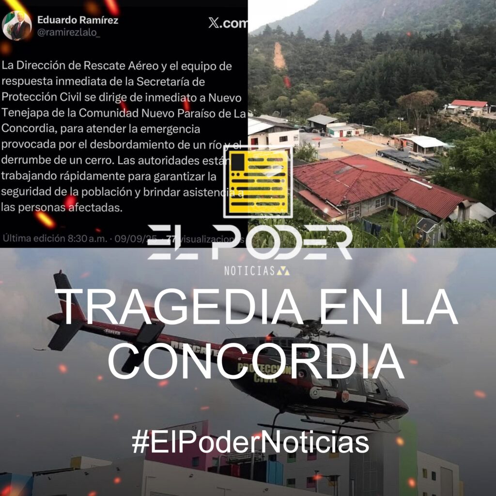 La naturaleza golpea con fuerza a Chiapas.En la comunidad Nuevo Tenejapa, municipio de La Concordia, un río se desbordó y un cerro colapsó, dejando tras de sí un escenario de destrucción y angustia.El gobernador Eduardo Ramírez confirmó que equipos de Rescate Aéreo y brigadas de la Secretaría de Protección Civil se movilizan de manera urgente hacia la zona.Hasta el momento se desconoce el saldo de víctimas o heridos, pero la magnitud del derrumbe ha generado pánico entre la población.Las autoridades piden a la ciudadanía extrema precaución y mantenerse atenta a las indicaciones oficiales, mientras la tragedia se desarrolla en tiempo real.